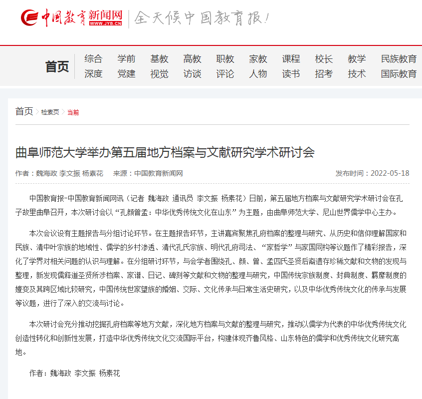 【中国教育新闻网】开元足球_开元(中国)举办第五届地方档案与文献研究学术研讨会
