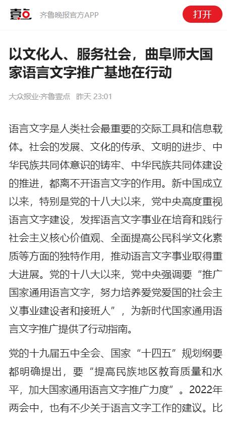 【齐鲁壹点】以文化人、服务社会,曲阜师大国家语言文字推广基地在行动