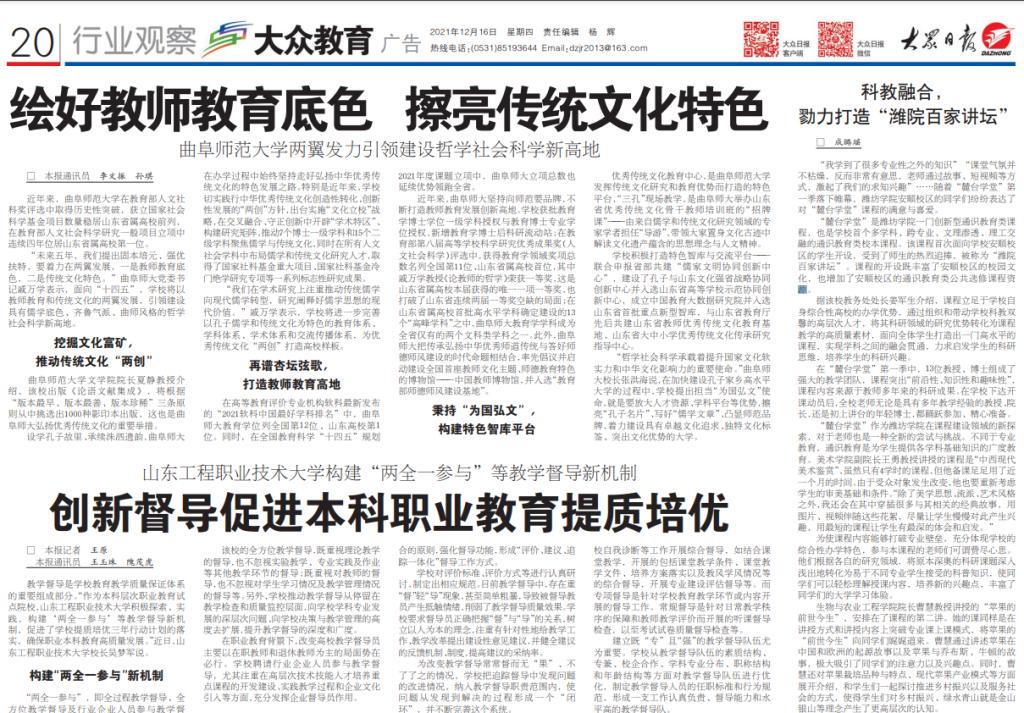 【大众日报】绘好教师教育底色 擦亮传统文化特色——开元足球_开元(中国)两翼发力引领建设哲学社会科学新高地