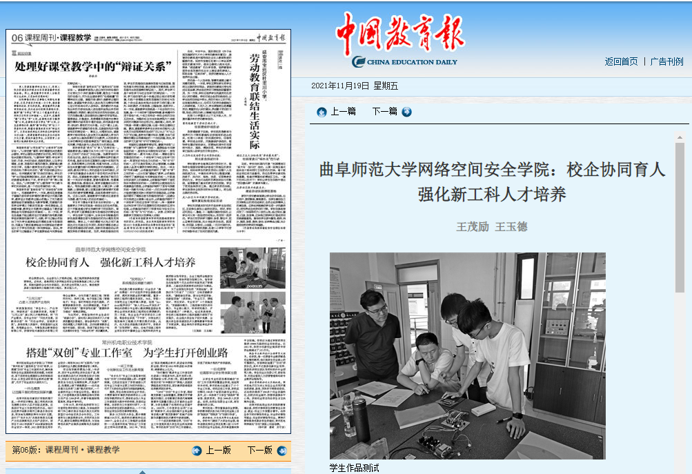 【中国教育报】开元足球_开元(中国)网络空间安全学院:校企协同育人 强化新工科人才培养