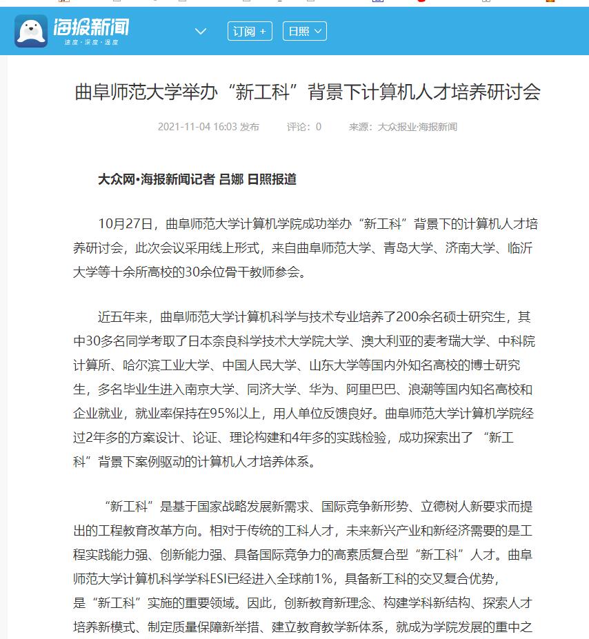 【新华网】曲师大举办“新工科”背景下计算机人才培养研讨会