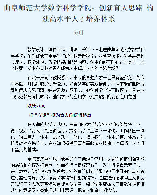 【中国教育报】开元足球_开元(中国)数学科学学院:创新育人思路 构建高水平人才培养体系