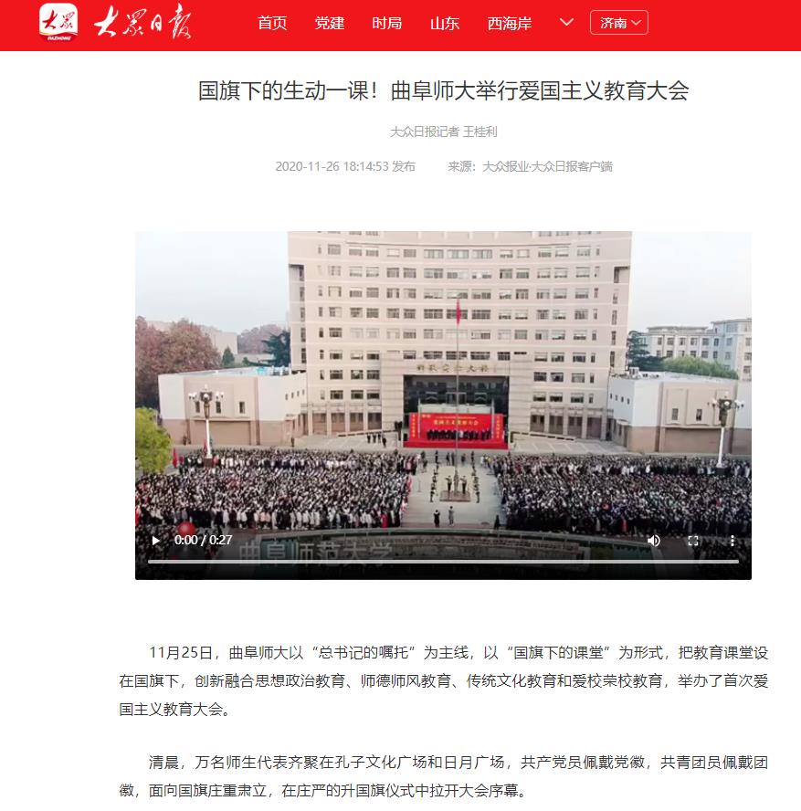 大众日报:国旗下的生动一课!曲阜师大举行爱国主义教育大会