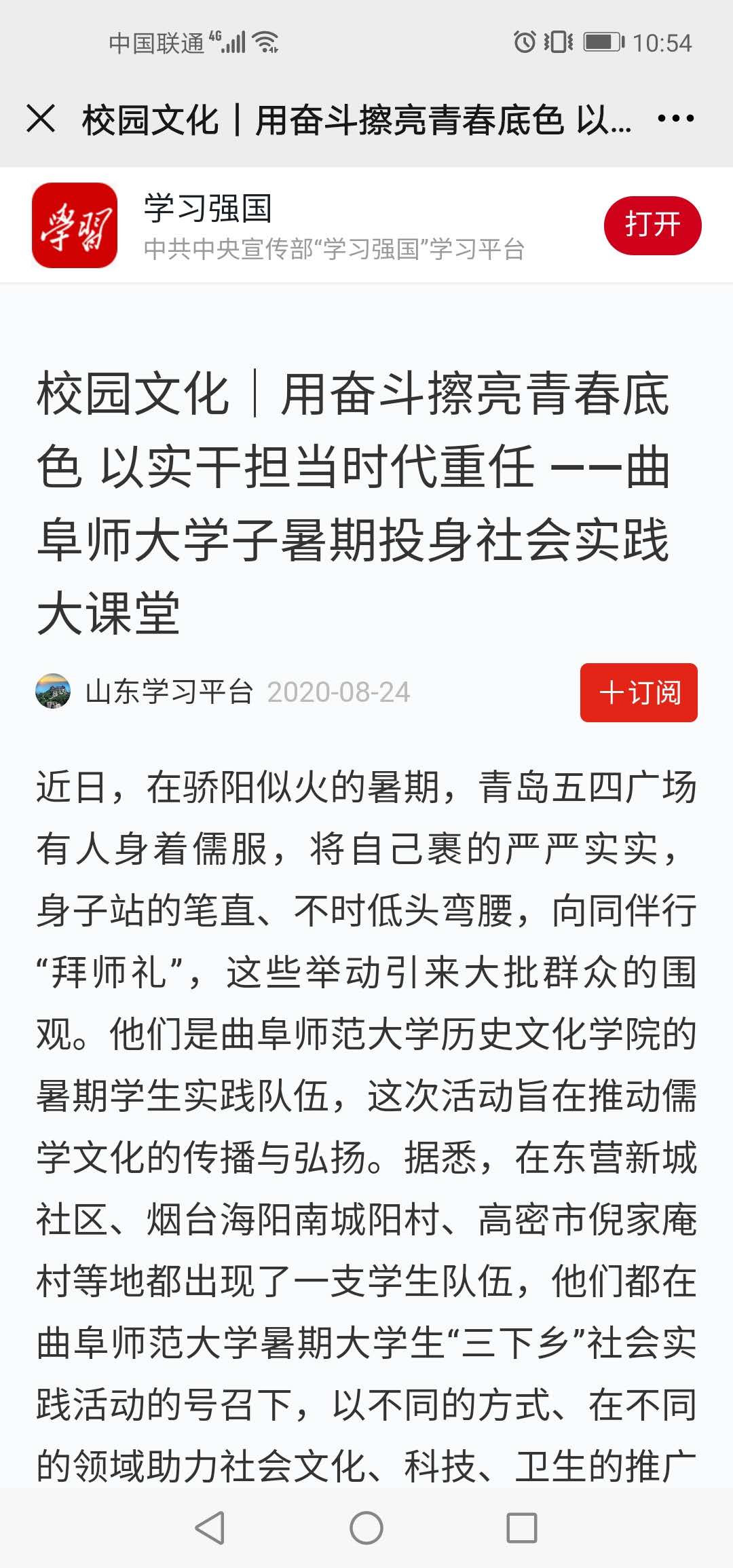 学习强国:用奋斗擦亮青春底色 以实干担当时代重任 ——曲阜师大学子暑期投身社会实践大课堂