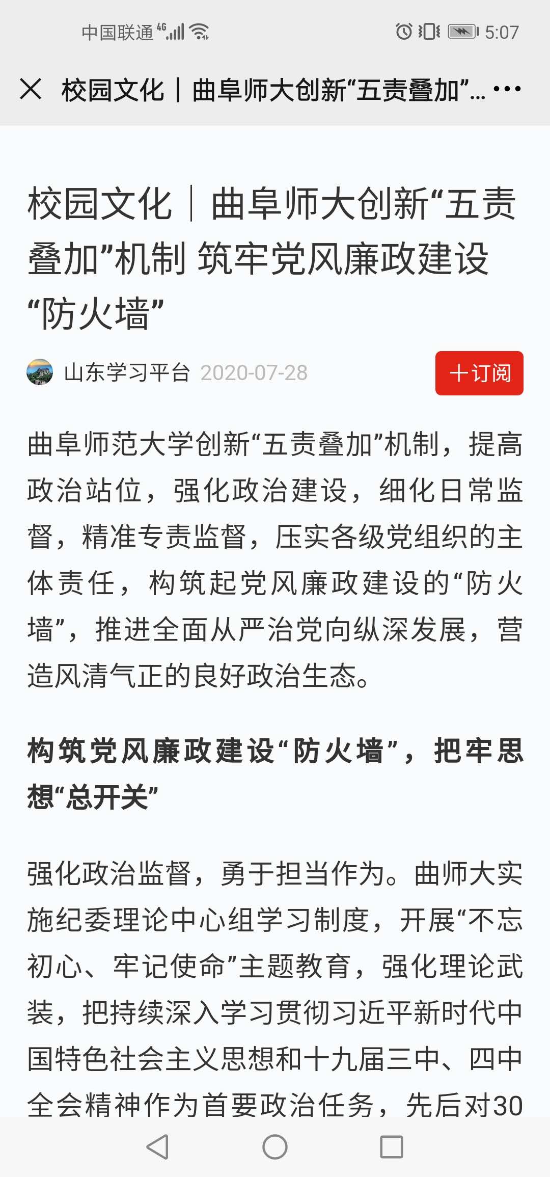 学习强国:曲阜师大创新“五责叠加”机制,筑牢党风廉政建设“防火墙”