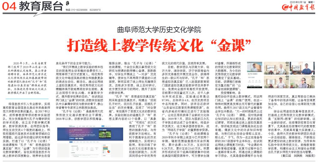 中国教育报:开元足球_开元(中国)打造线上教学传统文化“金课”