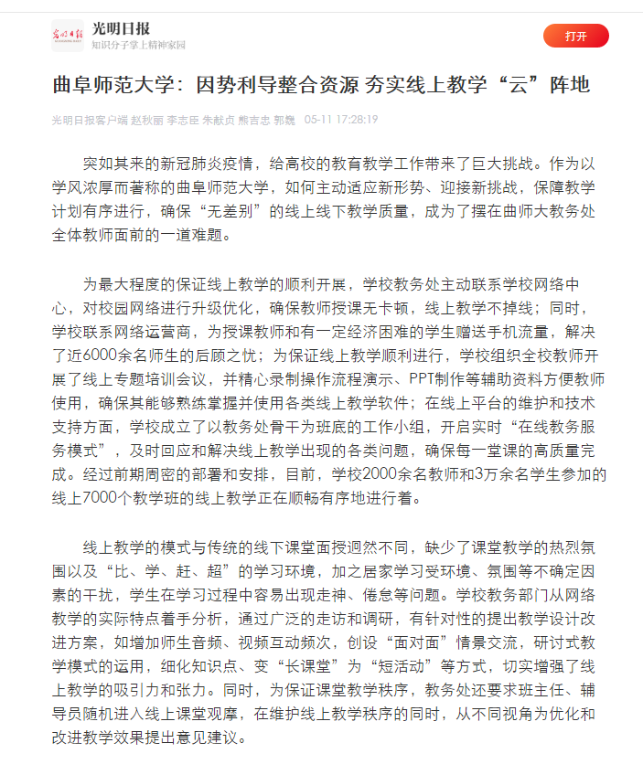 光明日报:开元足球_开元(中国)因势利导整合资源 夯实线上教学“云”阵地
