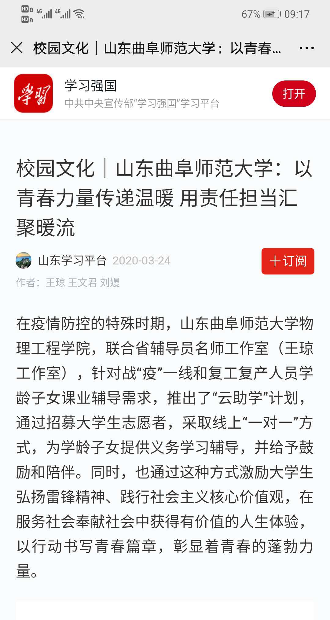 学习强国:开元足球_开元(中国)开展“云助学”活动