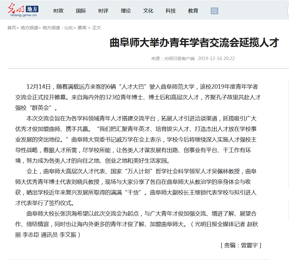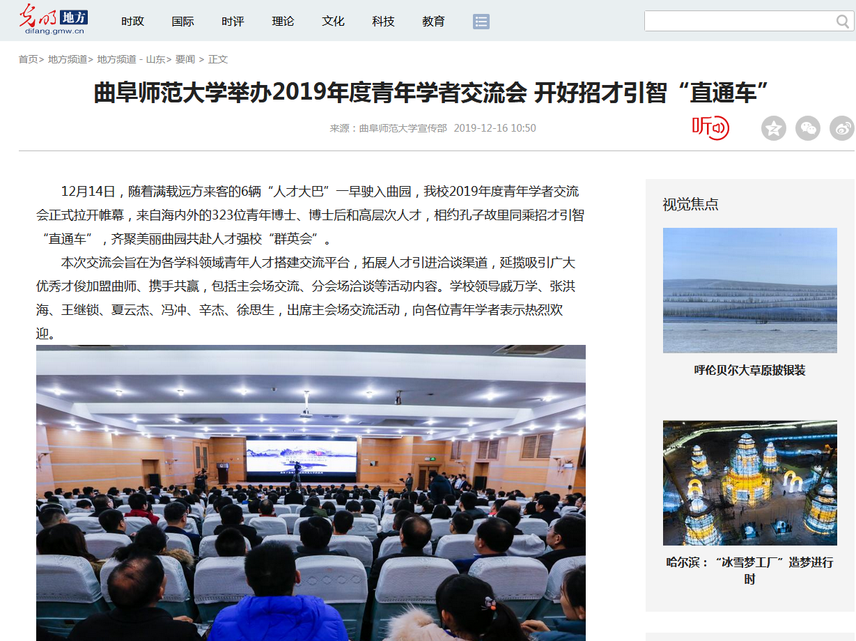 光明网:曲阜师大举办青年学者交流会延揽人才