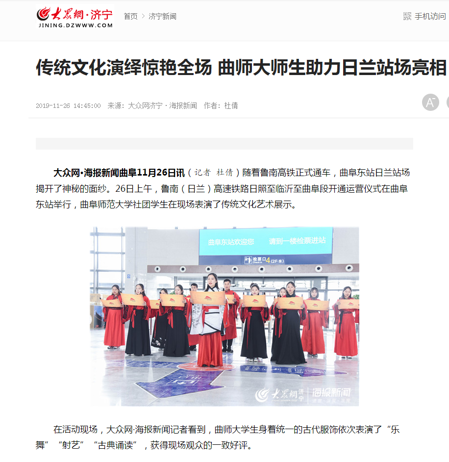 大众网:传统文化演绎惊艳全场 曲师大师生助力日兰站场亮相