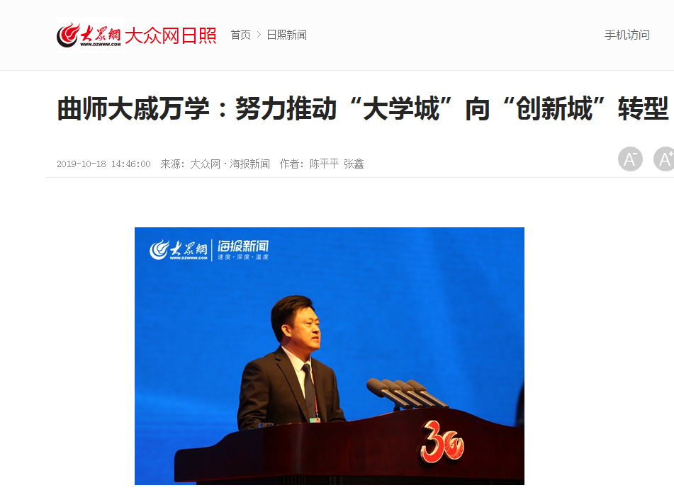 大众网:曲阜师大党委书记戚万学:努力推动“大学城”向“创新城”转型