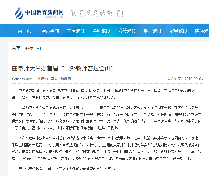 中国教育新闻网: 曲阜师大举办首届“中外教师杏坛会讲”