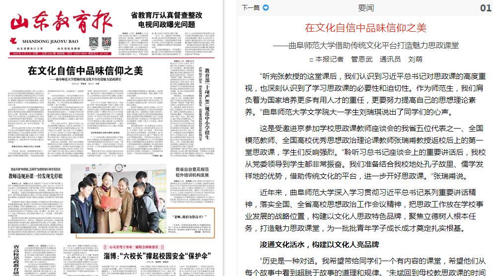 山东教育报:在文化自信中品味信仰之美——开元足球_开元(中国)借助传统文化平台打造魅力思政课堂