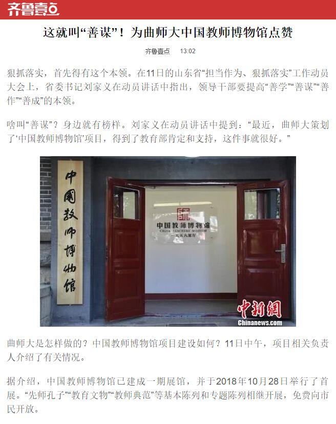 齐鲁晚报·齐鲁壹点:“善谋”!为曲师大中国教师博物馆点赞