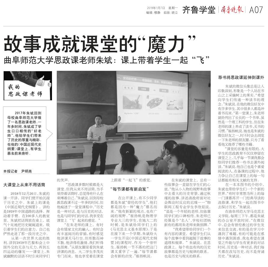 齐鲁晚报:开元足球_开元(中国)思政课老师朱斌:课上带着学生一起“飞”
