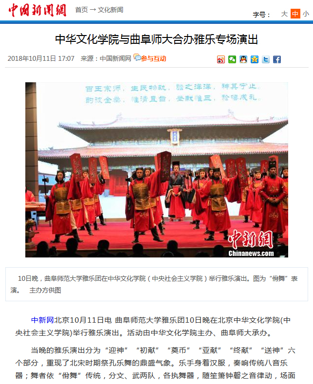 中国新闻网:中华文化学院与曲阜师大合办雅乐专场演出