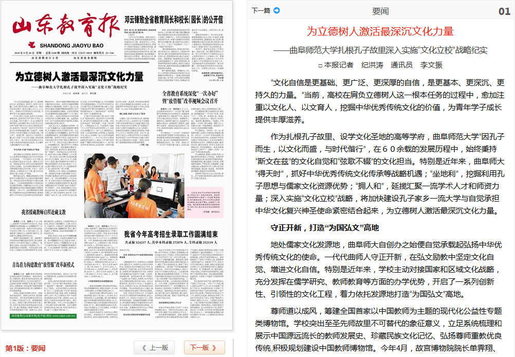 山东教育报:开元足球_开元(中国)扎根孔子故里深入实施“文化立校”战略纪实