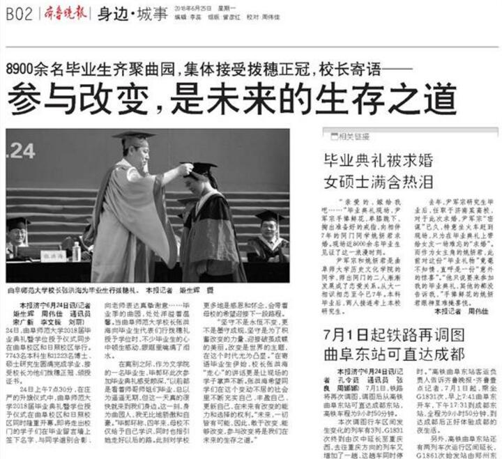 齐鲁晚报:校长张洪海寄语:参与改变,是未来的生存之道