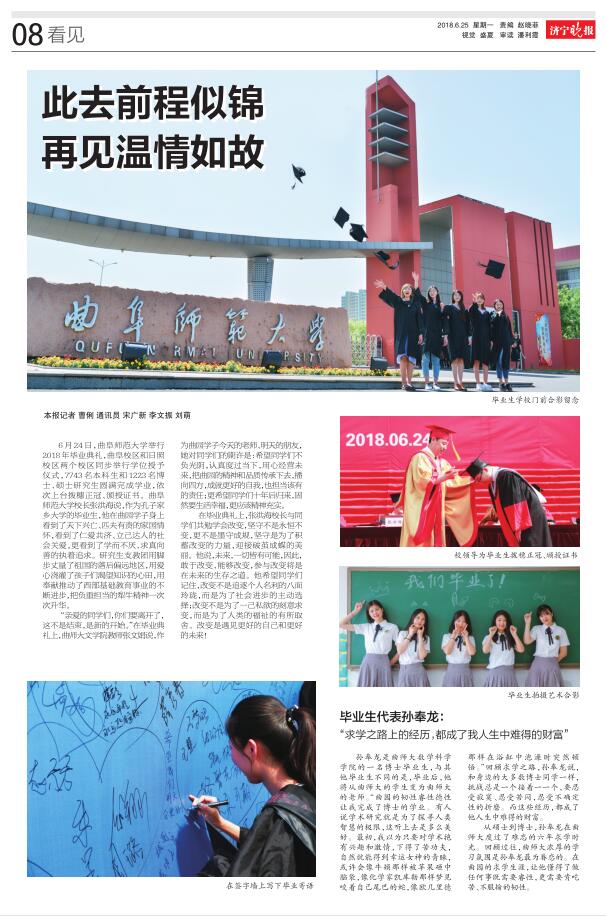 济宁晚报:校长寄语毕业生:此去前程似锦 再见温情如故