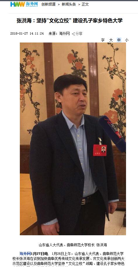 人民网:人大代表张洪海:坚定文化自信 弘扬优秀传统文化