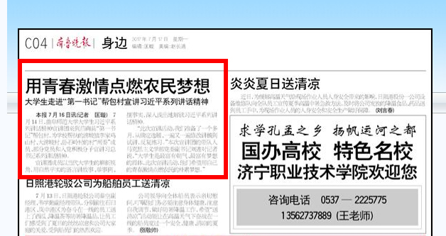 齐鲁晚报:大学生走进“第一书记”帮包村宣讲习近平系列讲话精神