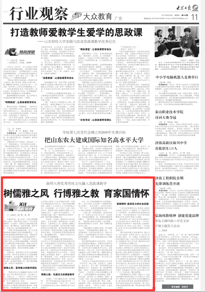 大众日报:树儒雅之风 行博雅之教 育家国情怀