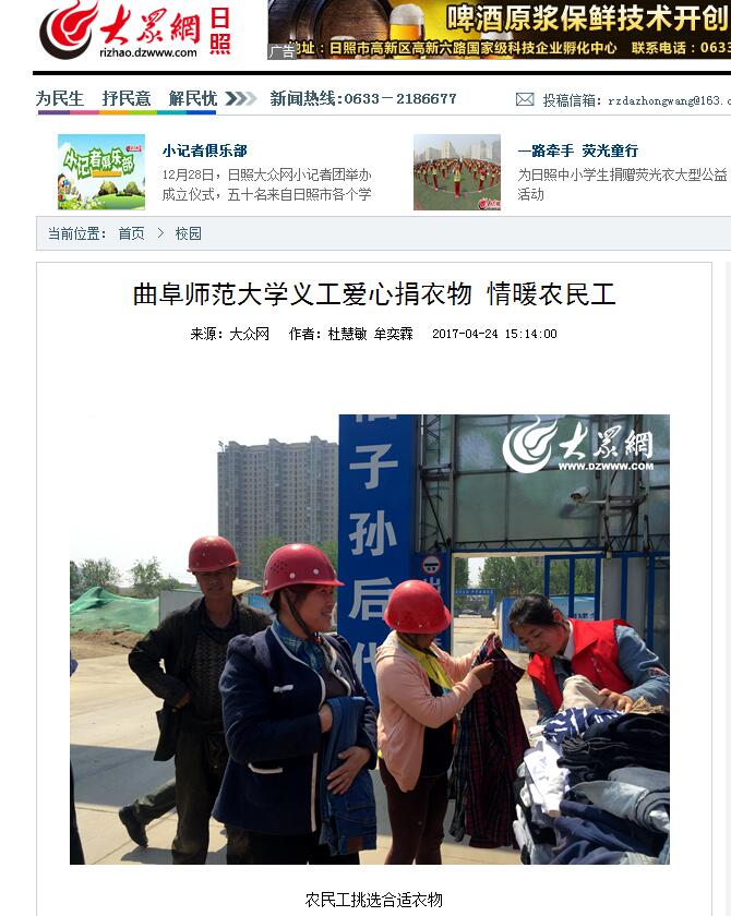 大众网:开元足球_开元(中国)义工爱心捐衣物 情暖农民工