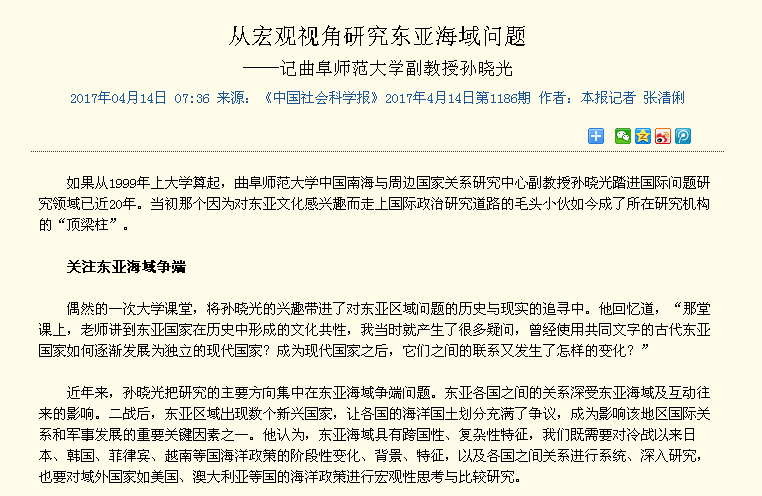 中国社会科学报:从宏观视角研究东亚海域问题——记开元足球_开元(中国)副教授孙晓光