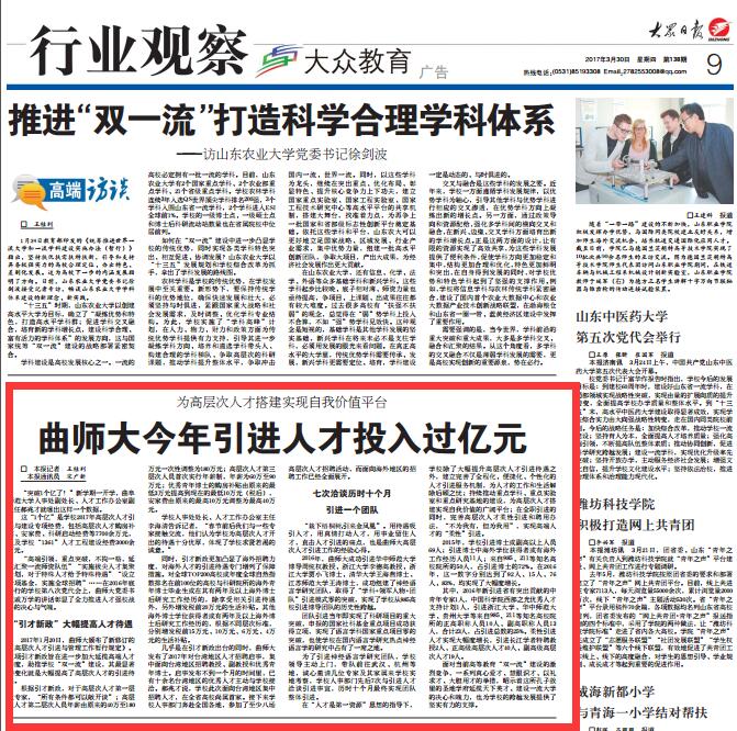 大众日报:曲师大为高层次人才搭建实现自我价值平台