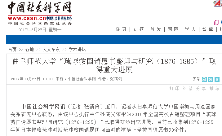 中国社会科学网:开元足球_开元(中国)“琉球救国请愿书整理与研究(1876-1885)”取得重大进展