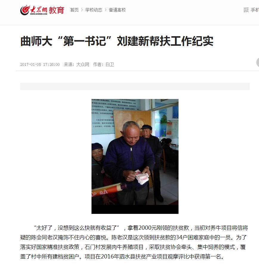 大众网:曲师大“第一书记”刘建新帮扶工作纪实