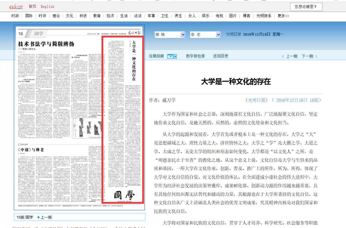 光明日报:戚万学:大学是一种文化的存在