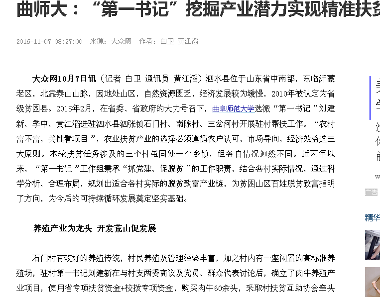 曲师大:“第一书记”挖掘产业潜力实现精准扶贫