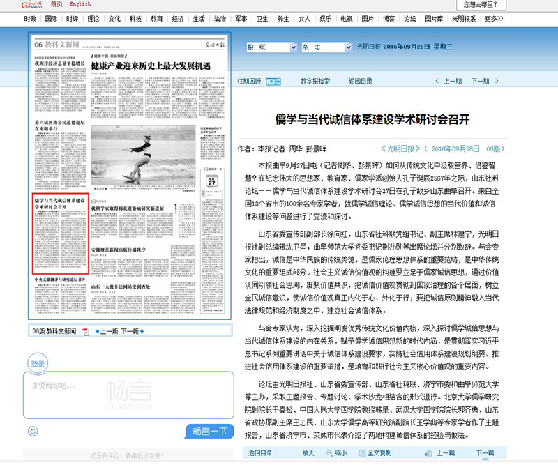 光明日报:儒学与当代诚信体系建设学术研讨会召开
