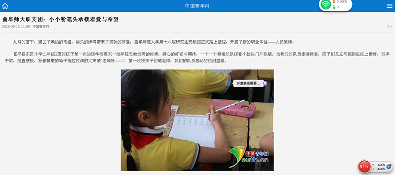 中国青年网:曲阜师大研支团:小小粉笔头承载着爱与希望