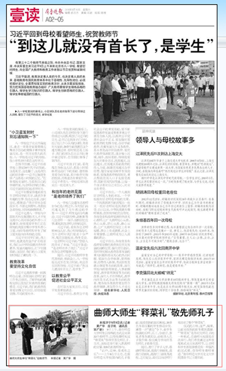 齐鲁晚报:曲师大师生“释菜礼”敬先师孔子