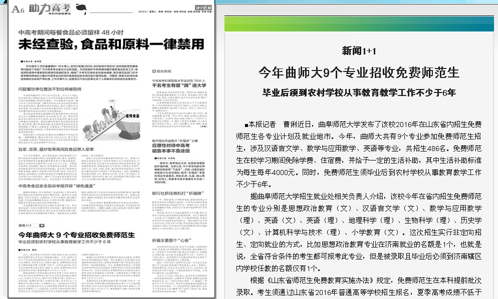 济宁晚报:今年曲师大9个专业招收免费师范生