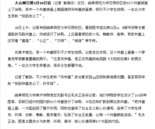 大众网:曲师大学生创意涂鸦 让井盖“说话”