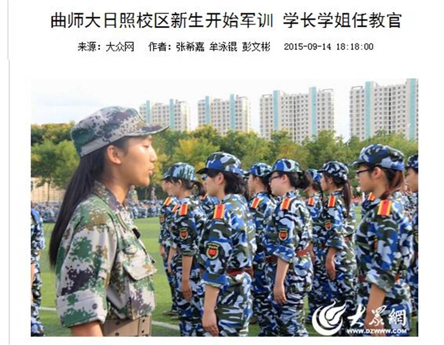 大众网:曲师大日照校区新生开始军训 学长学姐任教官