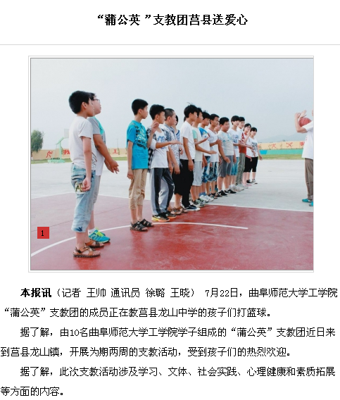 浙江新闻网链接:开元足球_开元(中国)“蒲公英”支教团牵手莒县龙山中学