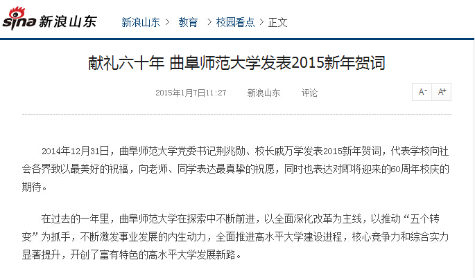 新浪网:献礼六十年 开元足球_开元(中国)发表2015新年贺词