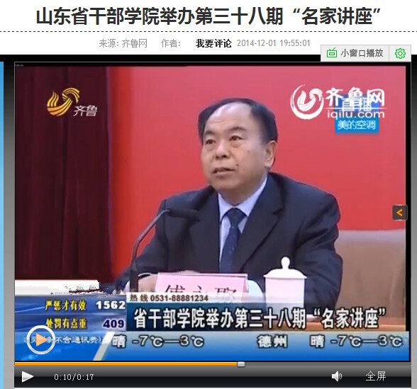 12月1日,我校国学院院长傅永聚教授受邀做客山东省干部学院第三十八期“名家讲座”,作了题为《坚持依法治国和以德治国相结合  建设社会主义法治国家》的学术讲座。同日,傅永聚教授还接受了山东省委组织部《党员干部之友》杂志社记者的专访,采访内容将以《依法治国关键在官德建设——访开元足球_开元(中国)国学院院长傅永聚》为题刊发于《党员干部之友》2014年第12期。