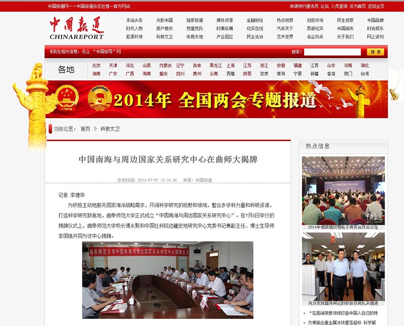 中国报道:中国南海与周边国家关系研究中心在曲师大揭牌