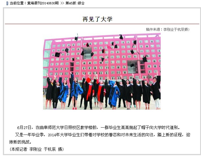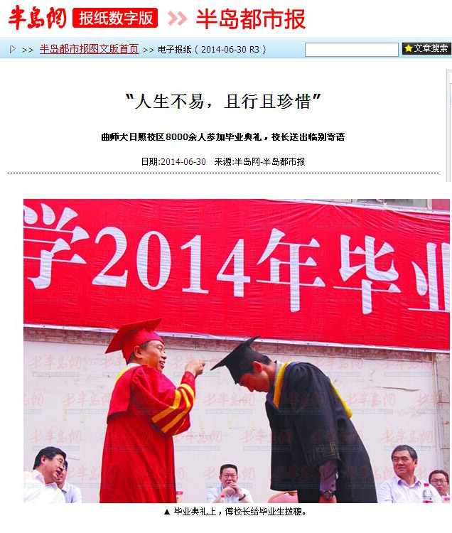 大众网:高校毕业季 曲阜师大校长寄语且行且珍惜