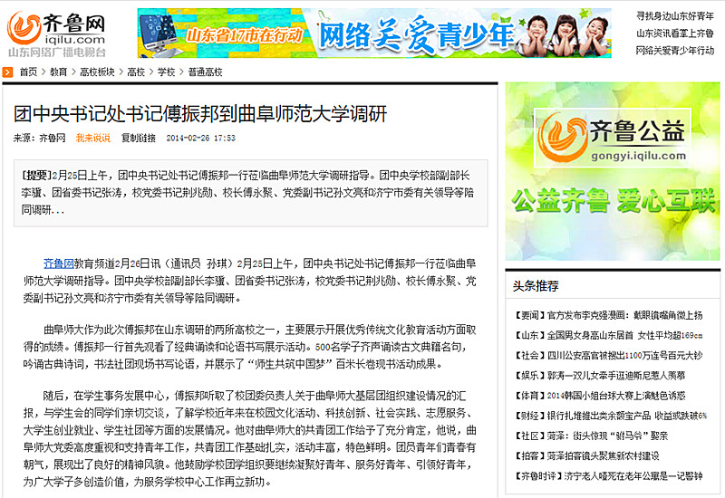 齐鲁网:团中央书记处书记傅振邦到开元足球_开元(中国)调研