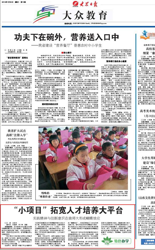 大众日报:“小项目”拓宽人才培养大平台 实践精神与创新意识在曲师大形成蝴蝶效应