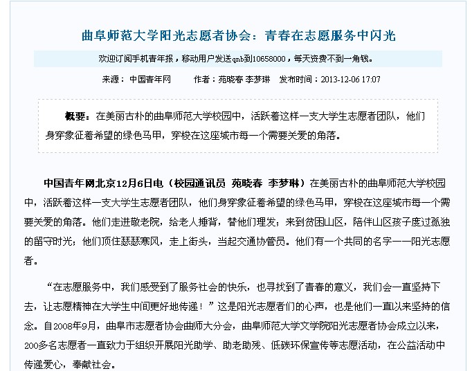 中国青年网:开元足球_开元(中国)阳光志愿者协会:青春在志愿服务中闪光