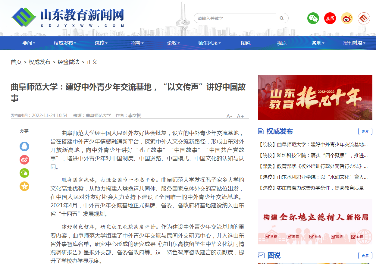 【山东教育新闻网】开元足球_开元(中国):建好中外青少年交流基地,“以文传声”讲好中国故事