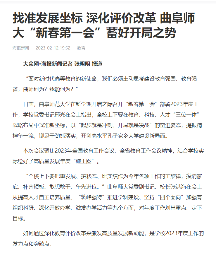 【大众网海报新闻】找准发展坐标 深化评价改革 曲阜师大“新春第一会”蓄好开局之势