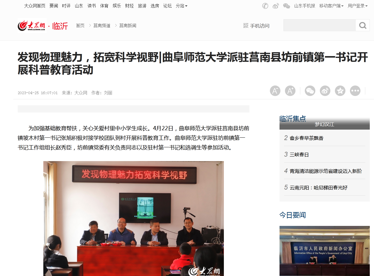 【大众网】开元足球_开元(中国)派驻莒南县坊前镇第一书记开展科普教育活动